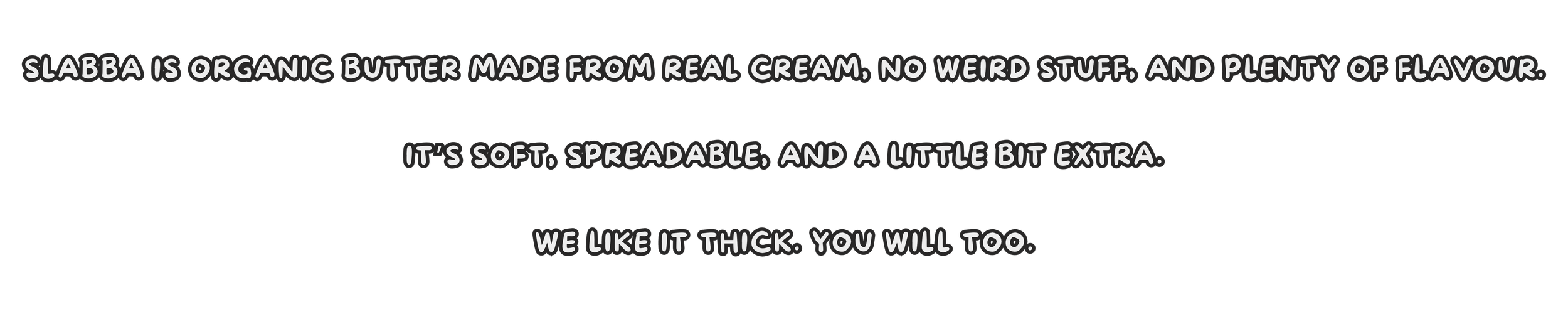 Slabba is a bold butter brand made for food lovers who want more from the everyday. Flavour-forward and unafraid to stand out on the shelf, it challenges category conventions with a playful, unapologetic voice.